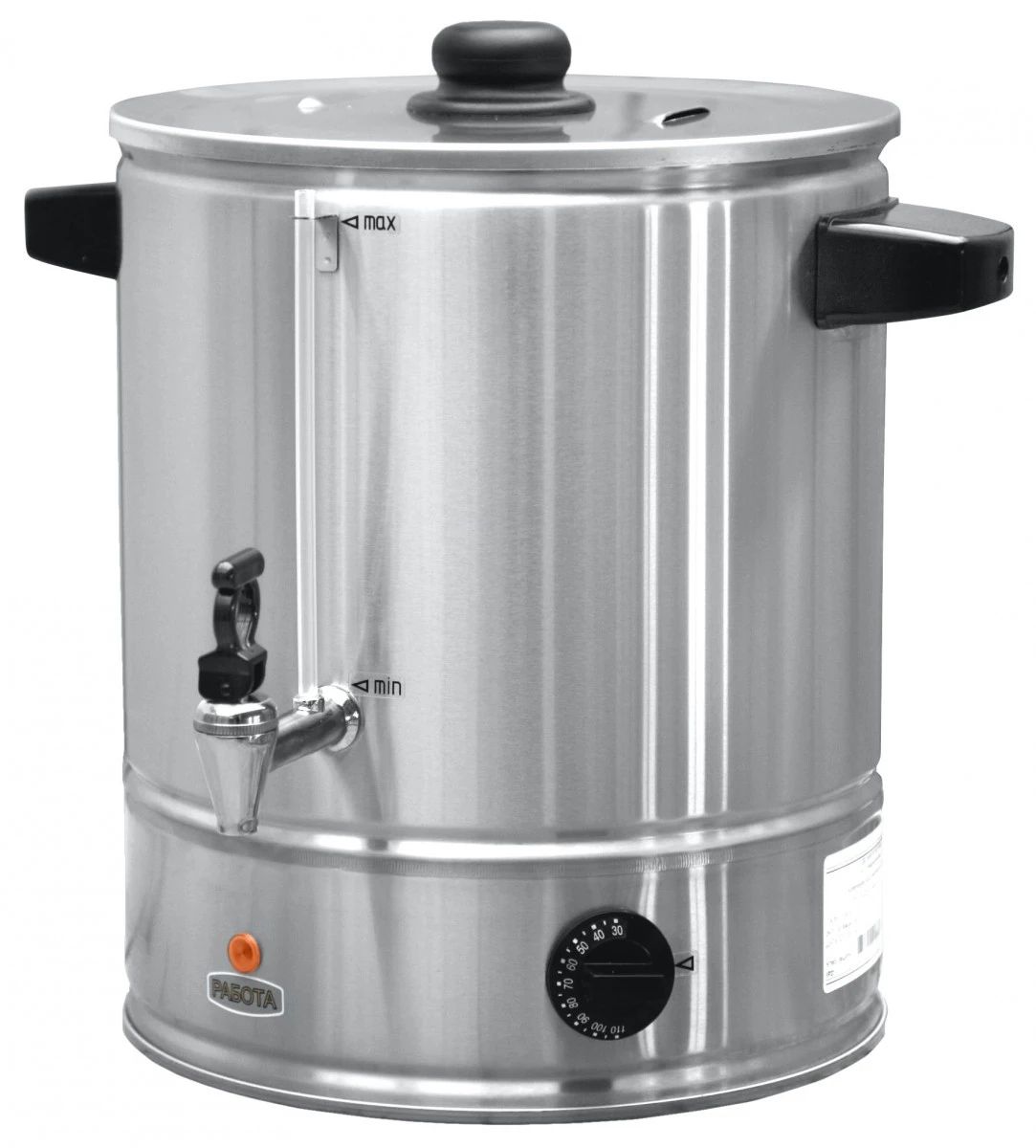 Габариты: 394х391х408 мм, 3000Вт, 220В, 15 л, +30...+110 наливного типа, время разогрева воды до кипения 50 мин.
